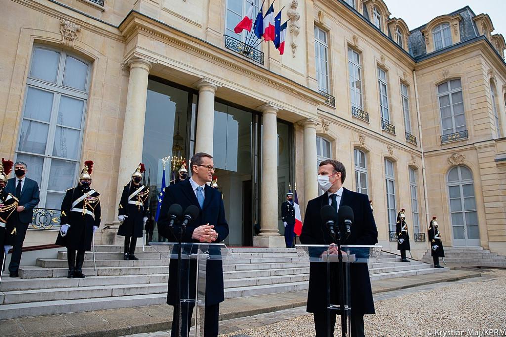 Premier Mateusz Morawiecki spotkał się z prezydentem Republiki Francuskiej Emmanuelem Macronem. Głównym tematem rozmów były m.in. kwestie związane ze szczepionkami przeciw Covid-19, wspólnym rynkiem i współpracą dwustronną.